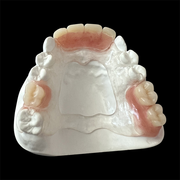 Alle Modellguesse, werden dann mit Kunststoffzähnen auf- und mit rosa Methylmetacrylat fertiggestellt und ausgeliefert.